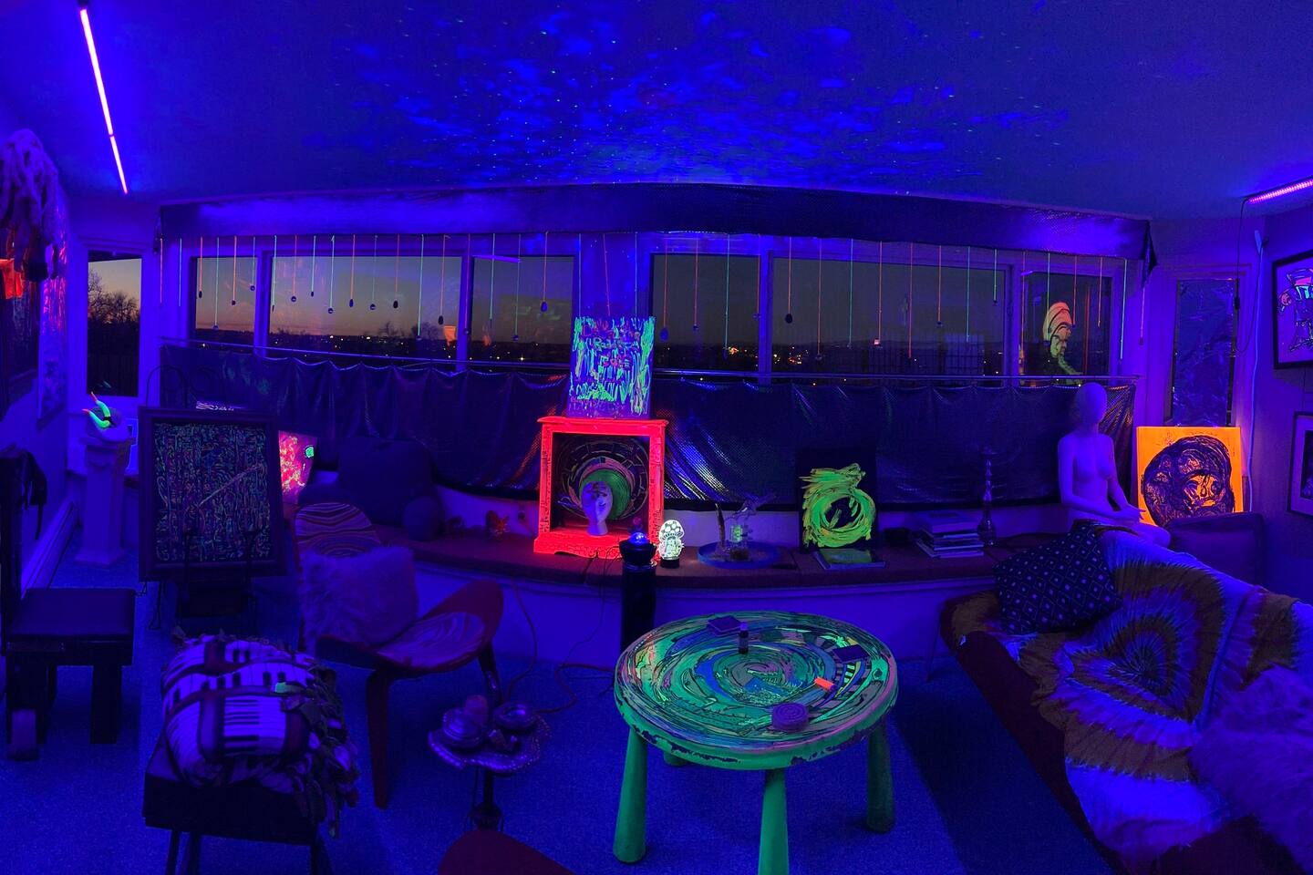 In 2017, I met my partner Greg, and together, we explored the captivating world of blacklight body painting. This experience rekindled my passion for painting and reignited my excitement to create on canvas once again. I yearned to express myself authentically, focusing on faces and scenes on blank canvases. Consequently, I began painting what I observed directly onto the canvas, unaware that these techniques had already been explored.
